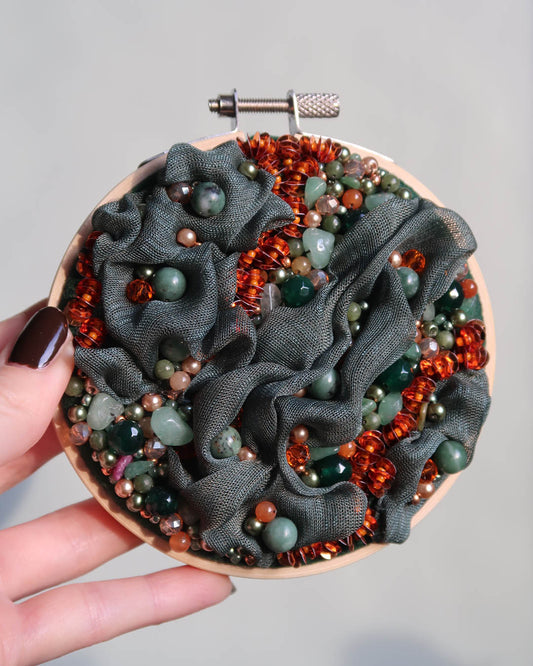 Kaoskonst är min kollektion av broderade tavlor med pärlor. Varje tavla görs i bara ett exemplar och med förhoppningen att den ska hitta till en person den bara passar helt perfekt för.