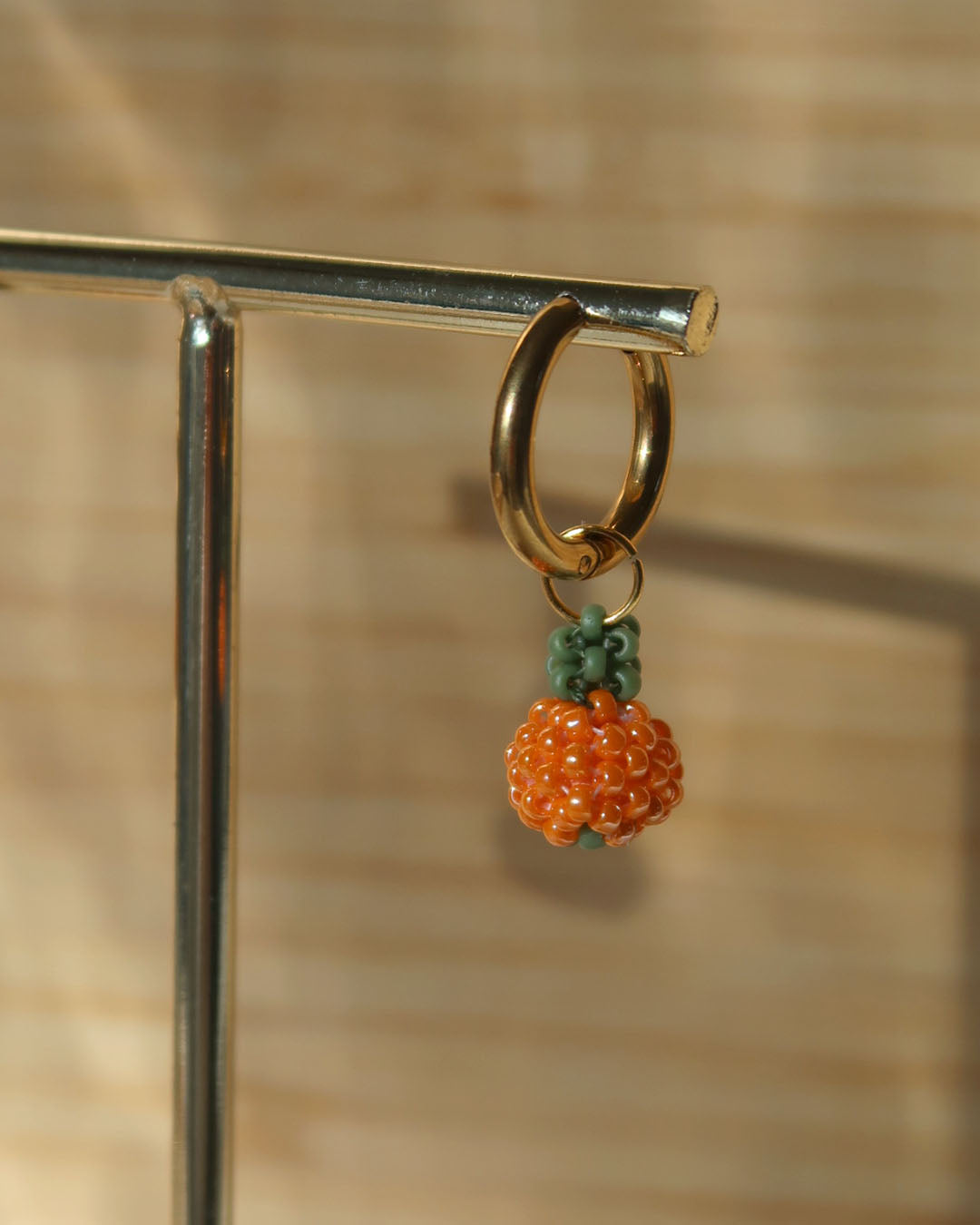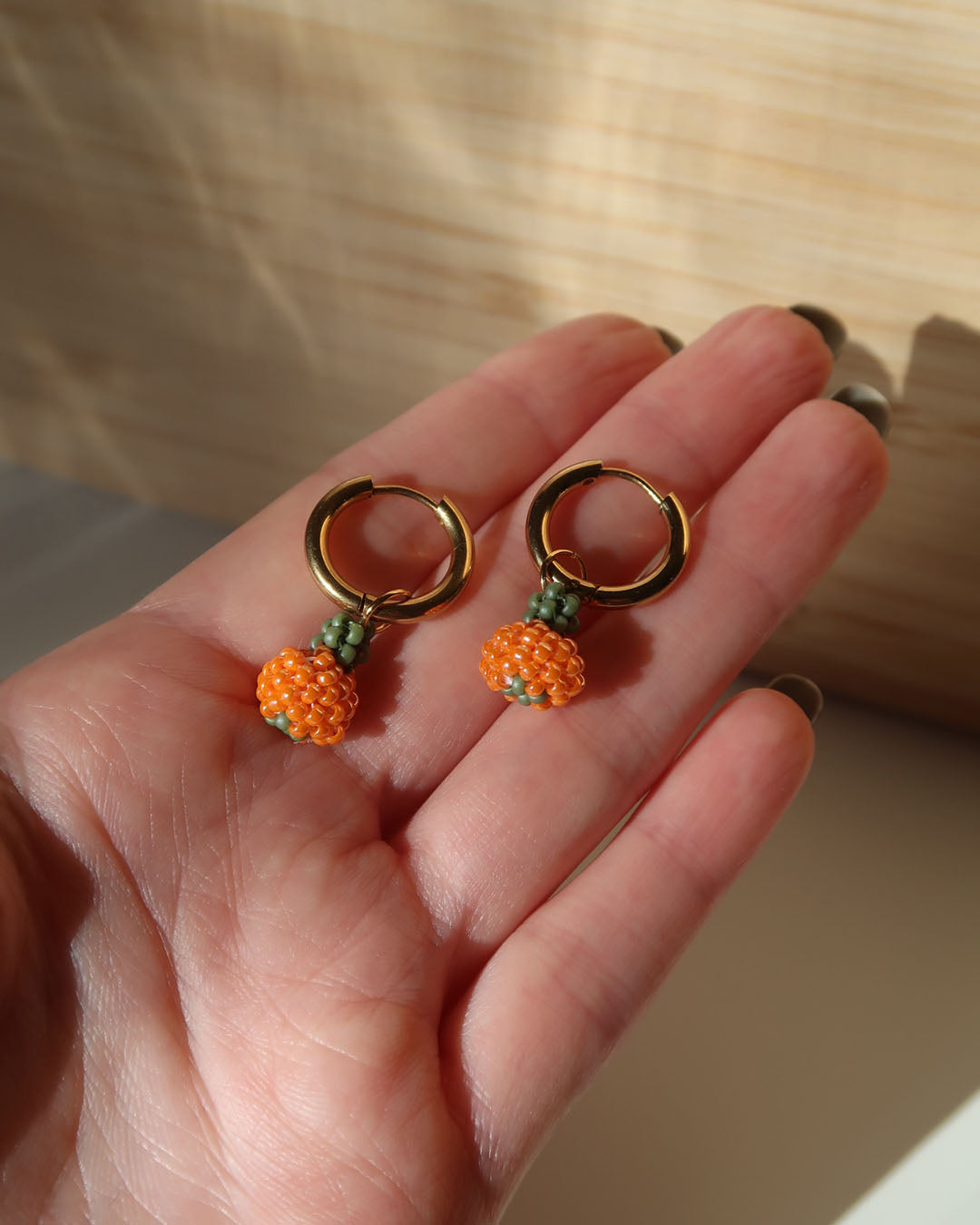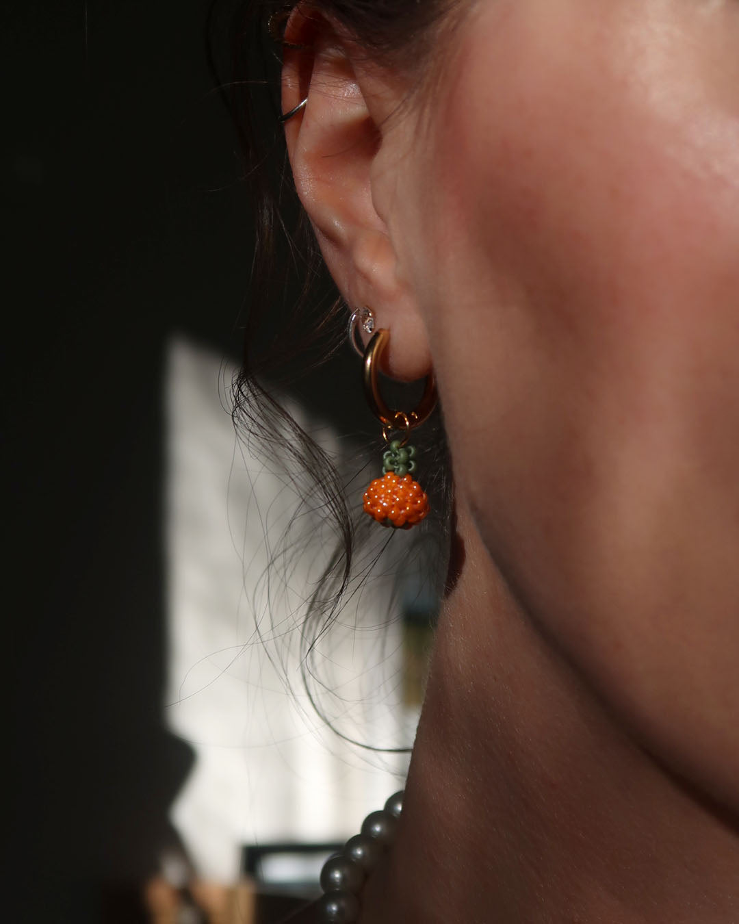 Ett par hoops med pumpor som är handgjorda av små glaspärlor, s.k. seed beads. Även om pärlorna är gjorda av glas är det väldigt lätta.